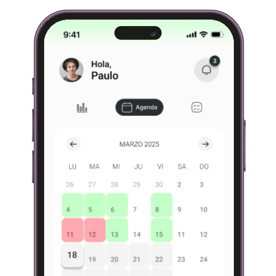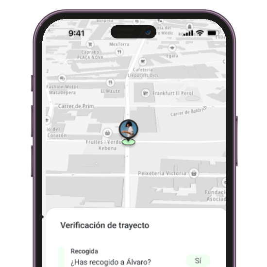 Confirma tus desplazamientos con geolocalización y horarios reales.