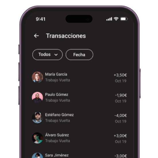 - Wallet integrada: paga o cobra desde la app, sin efectivo.